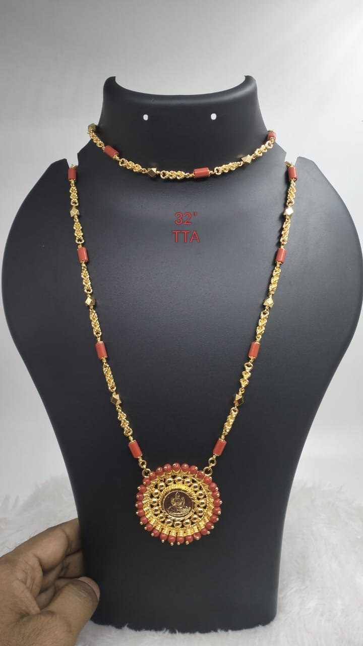 Premium quality one gram gold 32 inch musti Coral chain with laxmi Pendent