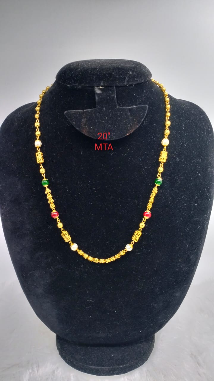 Premium quality One gram gold plated 18” Pearl and Nakshi ball chain