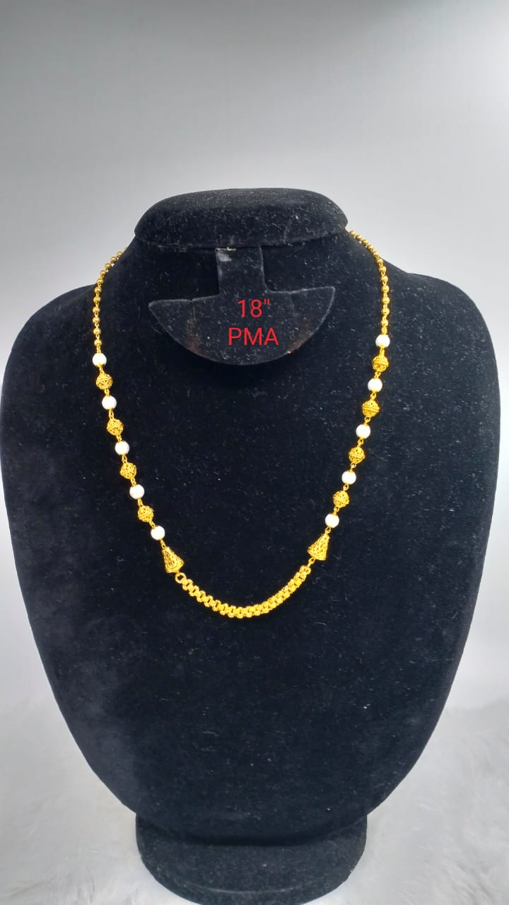 Premium quality One gram gold plated 18” Pearl and Nakshi ball chain